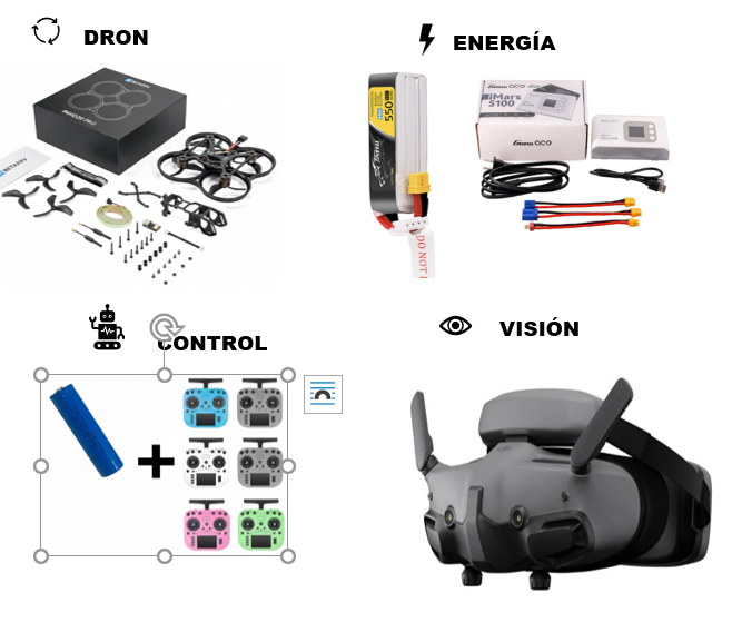 Este Combo FPV está diseñado para pilotos que buscan una experiencia completa, potente y confiable desde el primer vuelo. Reúne control profesional, visión HD de última generación, energía de alto rendimiento y un cinewhoop ágil y ligero, ideal tanto para freestyle como para vuelo cinematográfico. Es la combinación perfecta para quienes quieren volar, grabar y competir con equipos compatibles, modernos y listos para exprimir al máximo el FPV sin complicaciones.